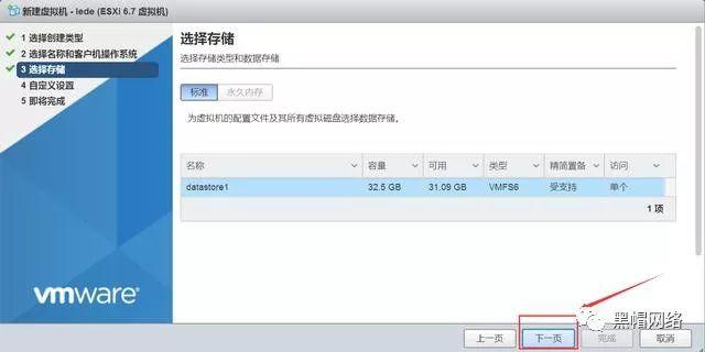 先暫時選個存儲,等下編輯替換為我們剛才上傳的vmdk文件: