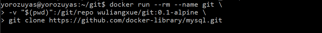 -v "$(pwd)":/git/repo wuliangxue/git:0.1-alpine \