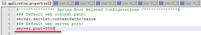 修改 nacos-server-1.2.1 文件夾下的 conf 下的 application.properties 的端口配置為 8858