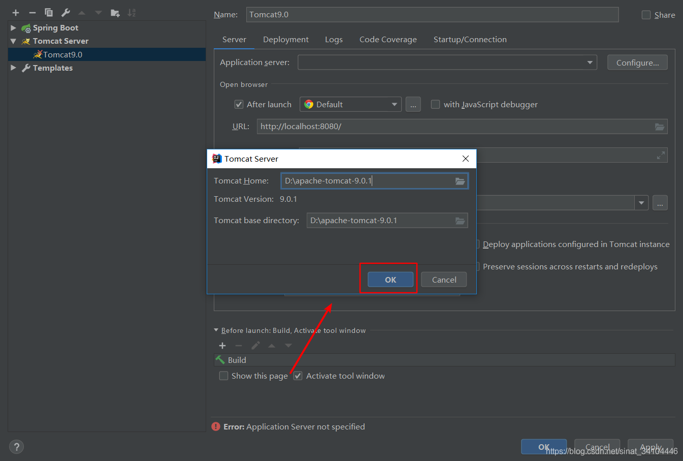 7.確認(rèn)之后會(huì)自動(dòng)識(shí)別出Tomcat服務(wù)器