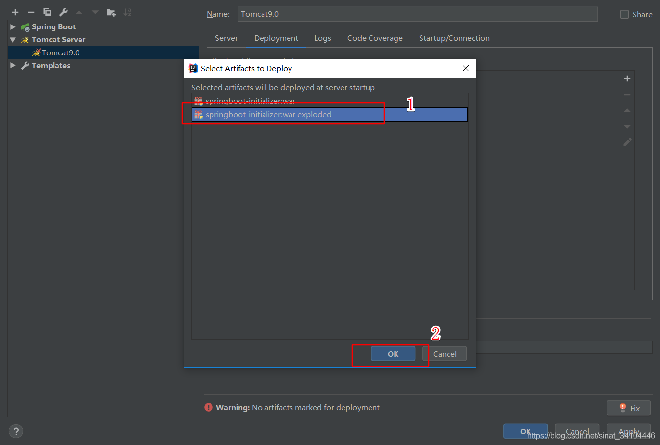 10.在彈出的項(xiàng)目中選擇第二個(gè),也就是帶有:war exploded 這一項(xiàng),然后確認(rèn)