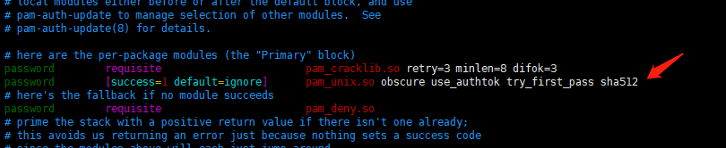 sudo vim /etc/pam.d/common-password