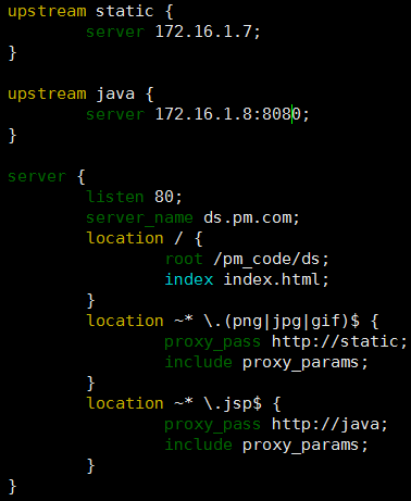 3.在lb01上/etc/nginx/conf.d/中創(chuàng)建配置文件ds.conf,內(nèi)容如下