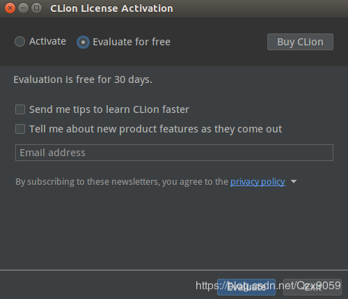 clion是一個收費軟件,我們可以選擇第二頁的免費30天試用,在校大學(xué)生可以用帶有edu的郵箱注冊免費使用一年,然后點擊evaluate即可