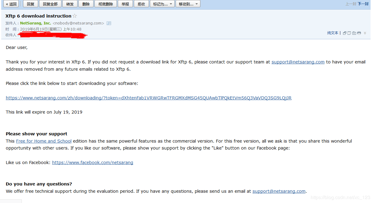 接收到郵件就可以點(diǎn)擊鏈接下載了。