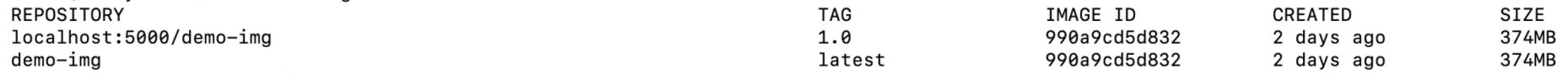 docker tag demo-img:latest localhost:5000/demo-img:1.0
