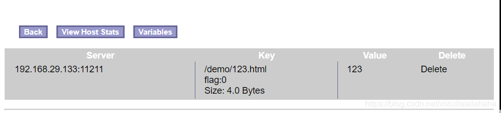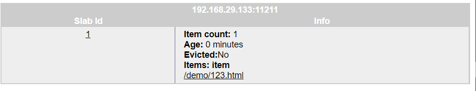 #可看出第一次memcache中沒有緩存,第二次擊中緩存 [root@bak ~]# curl -I http://192.168.29.132/demo/123.html HTTP/1.1 200 OK Server: nginx/1.16.1 Date: Thu, 25 Jun 2020 02:23:00 GMT Content-Type: file Content-Length: 4 Connection: keep-alive X-Powered-By: PHP/7.2.26 X-cache: MISS: [root@bak ~]# curl -I http://192.168.29.132/demo/123.html HTTP/1.1 200 OK Server: nginx/1.16.1 Date: Thu, 25 Jun 2020 02:23:01 GMT Content-Type: text/html Content-Length: 4 Connection: keep-alive X-mem-key: /demo/123.html Accept-Ranges: bytes #當(dāng)設(shè)置緩存后,訪問相同的緩存key時,即使發(fā)起訪問的機(jī)器不相同也同樣能擊中緩存 [root@master ~]# curl -I http://192.168.29.138/demo/123.html HTTP/1.1 200 OK Server: nginx/1.16.1 Date: Thu, 25 Jun 2020 02:29:46 GMT Content-Type: text/html Content-Length: 4 Connection: keep-alive X-mem-key: /demo/123.html Accept-Ranges: bytes