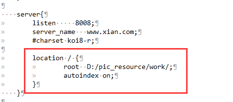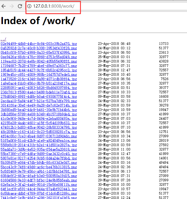 我電腦上的work文件夾下面有很多圖片,我想通過nginx搭建靜態(tài)資源服務(wù)器,通過在地址欄輸入ip+port的方式完成目錄的映射