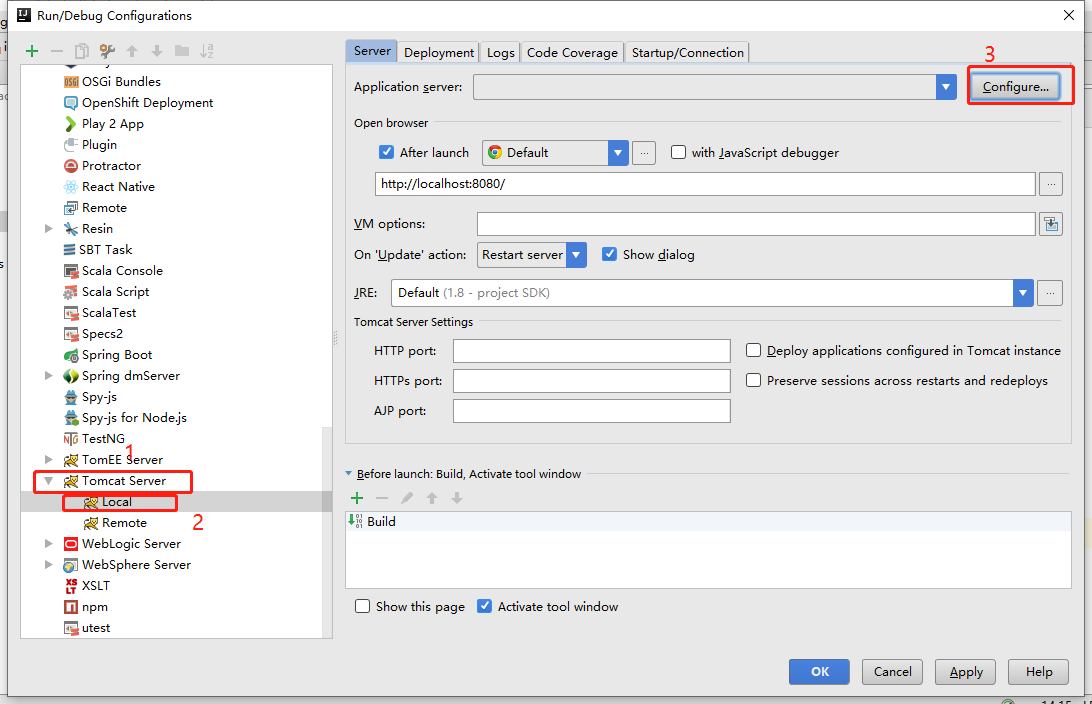 點(diǎn)擊加號(hào),如果之前的tomcat沒有配置好的話,這里是沒有Tomcat Server的。