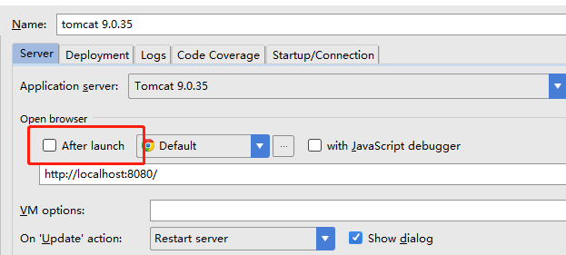 After launch最好點(diǎn)掉,小編剛開始做的時(shí)候想嘗試一下勾選之后什么情況,就是之后每次運(yùn)行tomcat時(shí)瀏覽器都會(huì)出現(xiàn)一個(gè)新的標(biāo)簽頁,所以還是點(diǎn)掉比較好。