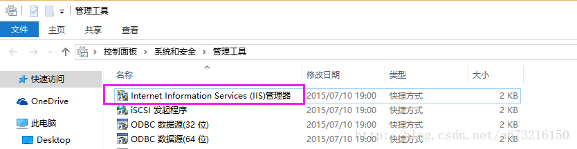 6、“控制面板”>“系統(tǒng)和安全”>“管理工具”,找到“Internet信息服務(wù)(IIS)管理器”。
