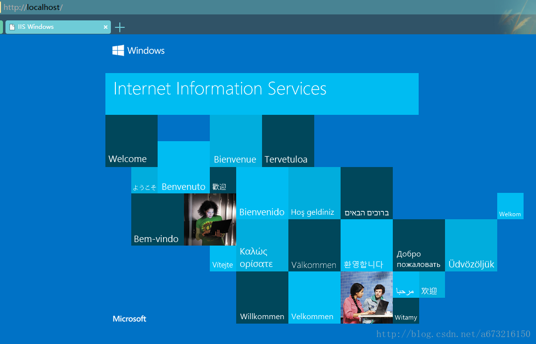 4、組件安裝完成之后,在地址欄輸入localhost即可打開Win10 自帶 IIS 默認(rèn)網(wǎng)站。