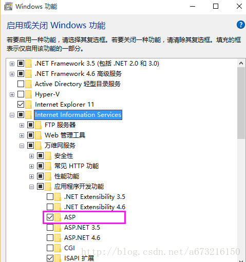 2、 找到Internet信息服務(wù)(即IIS)按照下圖所示勾選IIS服務(wù)器所需組件: