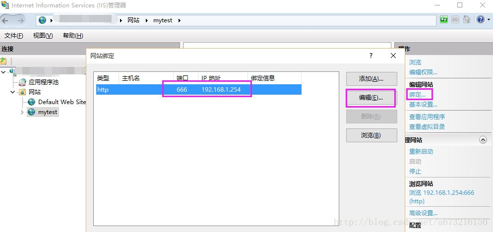 7、打開“Internet信息服務(wù)(IIS)管理器”,創(chuàng)建自己的站點(diǎn),右擊“網(wǎng)站”>“添加網(wǎng)站”,設(shè)置如下圖,即可添加成功名稱為“mytest”的網(wǎng)站。