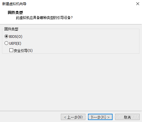 選擇固件類型,這里設(shè)置為BIOS(O),點(diǎn)擊下一步: