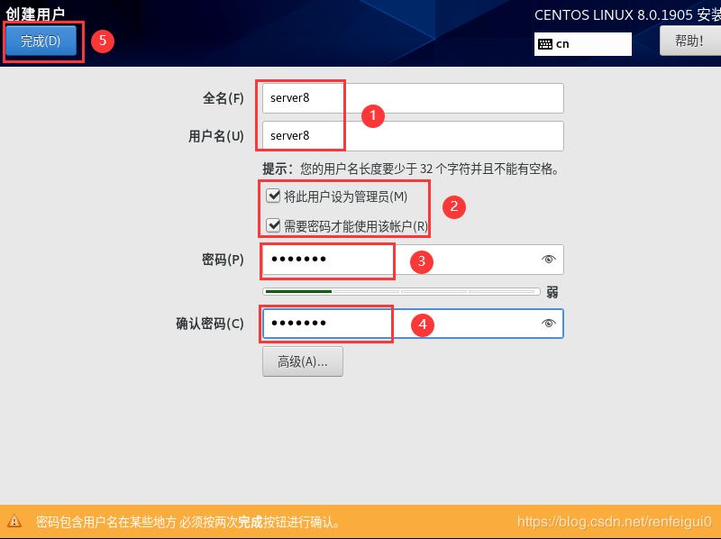 21、輸入用戶名密碼后點(diǎn)擊完成(可以設(shè)置此賬戶為管理員)。