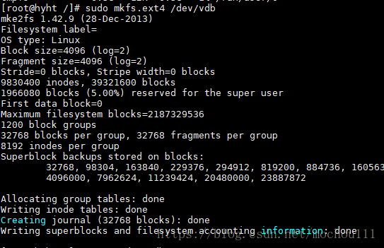 mkfs.ext4 /dev/vdb # 初始化磁盤(pán)