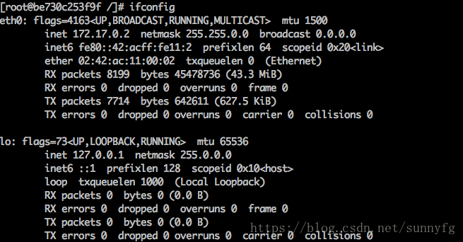 所以要想看到docker容器的ip地址,只需要安裝net-tools就可以了