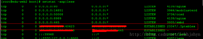 工作環(huán)境中遇到網(wǎng)絡(luò)不正常,檢測(cè)是某服務(wù)器異常往外發(fā)送數(shù)據(jù)包,使用netstat命令查看,發(fā)現(xiàn)有程序.IptabLex的這個(gè)進(jìn)程狀態(tài)為異常連接.無(wú)法有效清除,因此想知道是哪個(gè)目錄的此程序處于僵死狀態(tài).