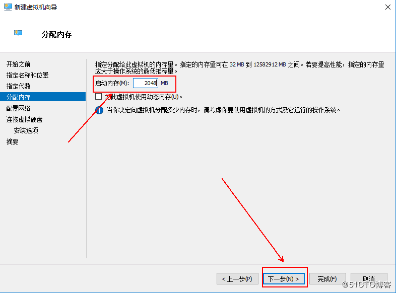 10、這里根據(jù)實際需求來定義虛擬機的內(nèi)存,然后單擊“下一步”: