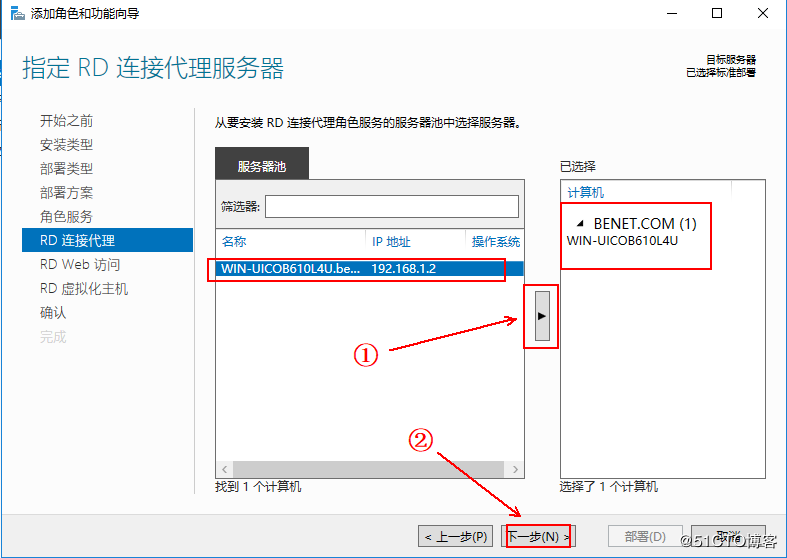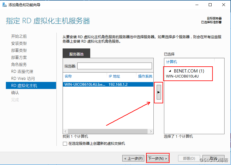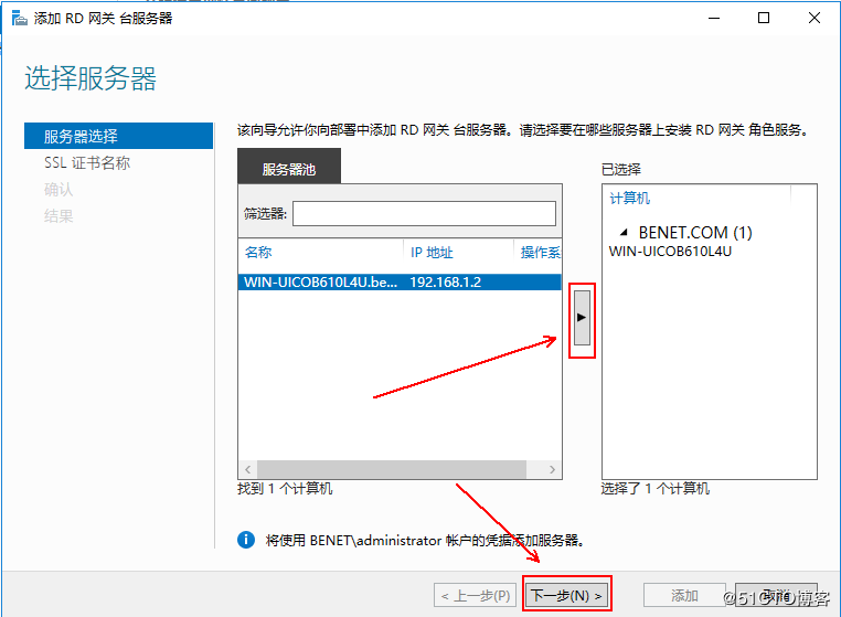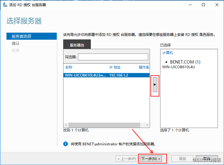 2、在這里把左側(cè)窗格中的服務器添加到右側(cè)窗格,然后單擊“下一步”: