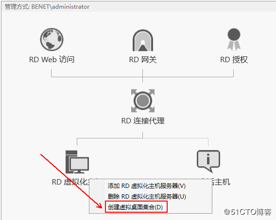 1、右擊“RD虛擬化主機”,然后選擇“創(chuàng)建虛擬桌面集合”: