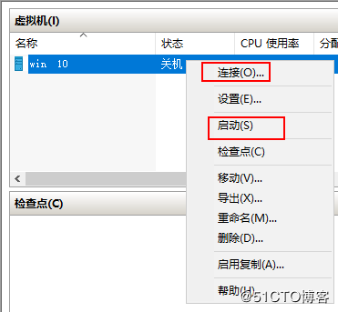 15、現(xiàn)在即可看到創(chuàng)建的虛擬機,右擊虛擬機并點擊“啟動”和“連接”: