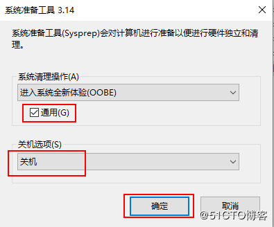 18、在彈出的對話框中,選擇“關機”選項,并勾選“通用”復選框,然后單擊“確定”(注意,一定要選擇為“關機”,要不然,這一步做的沒有意義):