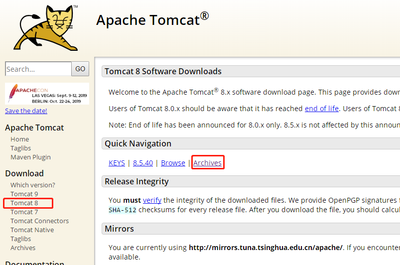 這邊我選擇Tomcat8 Archives可以查看歷史版本