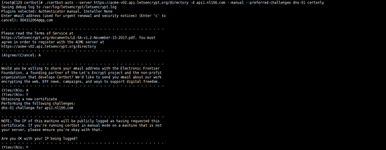 ./certbot-auto --server https: // acme-v02.api.letsencrypt.org/directory -d api.nl166.com --manual --preferred-challenges dns-01 certonly