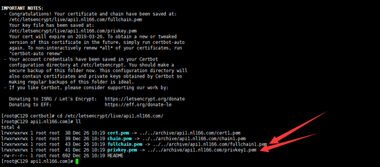 其中域名為/etc/letsencrypt/renewal/目錄下的****.conf ,****就是你要填寫的域名,比如我生成的時(shí)候是*.nl166.com,但是在實(shí)際生成的時(shí)候是沒(méi)有*號(hào)的