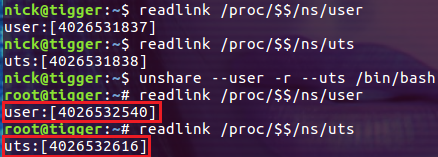 依然是沒有權限啊!看來這個新 user namespace 中的 root 用戶在父 user namespace 里面不好使。這也正是 user namespace 所期望達到的效果,當訪問其它 user namespace 里的資源時,是以其它 user namespace 中的相應用戶的權限來執(zhí)行的,比如這里 root 對應父 user namespace 的用戶是 nick,所以改不了系統(tǒng)的 hostname。
