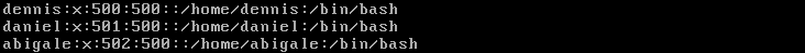 【題1.1】建立兩個用戶組group1和group2,以及三個用戶dennis、daniel、abigale,并且將前2個用戶分配在group1用戶組下,后一個分配在group2用戶組下