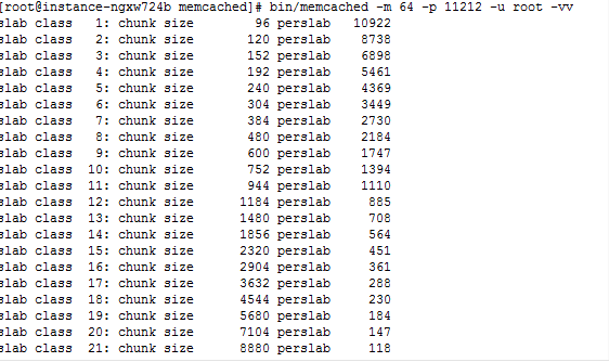 cd /usr/local/memcachedbin/memcached -m 64 -p 11211 -u root -vv # -m 64:分配給memcached的最大內(nèi)存,默認(rèn)為64mb -p 11211:監(jiān)聽的端口號 -u root:運(yùn)行memcache的用戶
