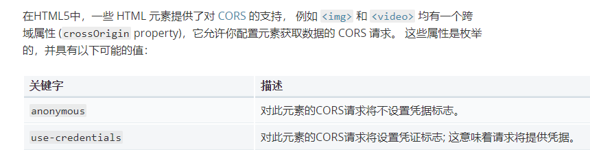 查閱MDN文檔(https://developer.mozilla.org/zh-CN/docs/Web/HTML/CORS_settings_attributes),可以發(fā)現(xiàn)crossOrigin有兩個(gè)取值