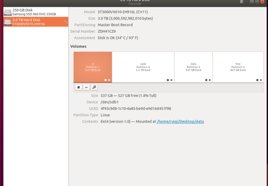 linux 進行分區(qū)匯總。新電腦配置了一個固態(tài)256G的還有一個3T的硬盤。新公司要求自己進行安裝。剛開始安裝系統(tǒng)的時候沒有注意到還有一塊硬盤。導致在安裝系統(tǒng)的時候沒有進行把普通硬盤進行分區(qū)和掛載,那么沒法了只能手動去操作把剩余的硬盤進行分區(qū)和掛載操作。