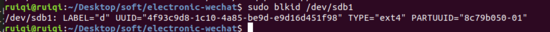 2、上面只是臨時掛載我們需要進行永久性掛載。先檢查下需要增加的分區(qū)uuid還有其類型。 sudo blkid /dev/sdb1 進行查看uuid,保存好uuid和類型。