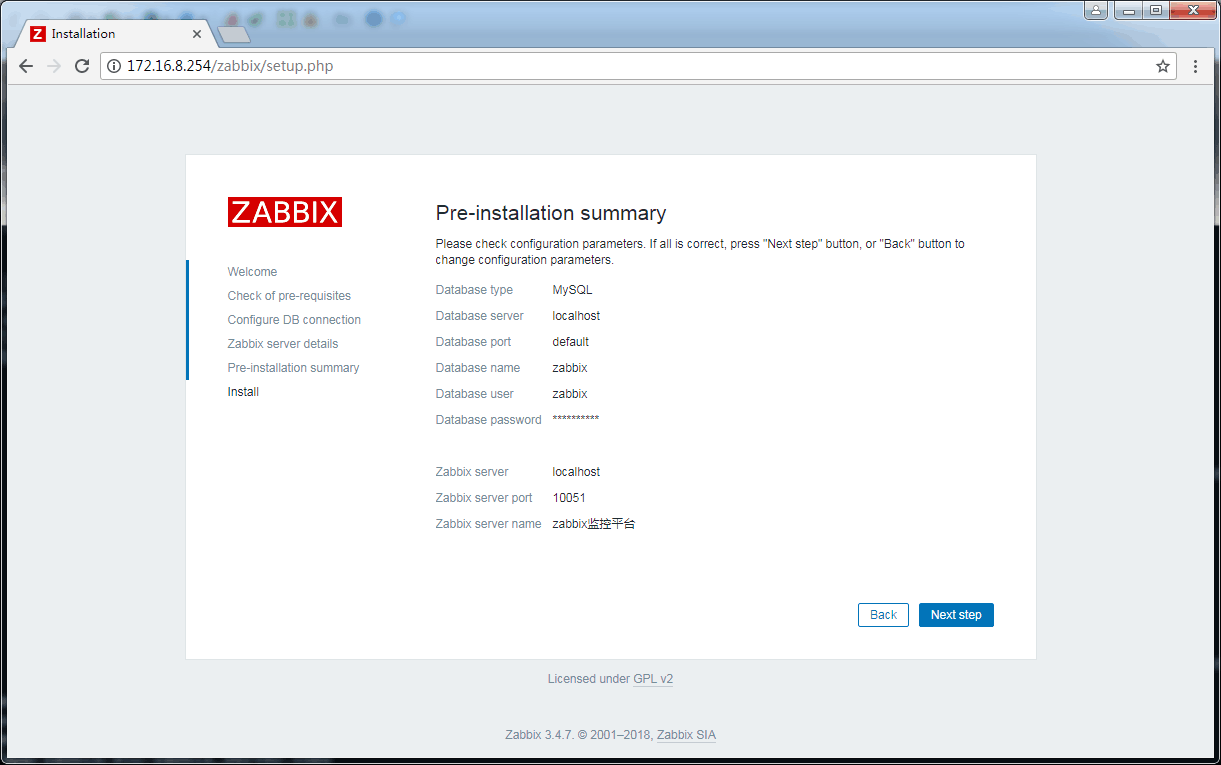 至此zabbix 前面安裝 “Check of pre-requisites”全部OK