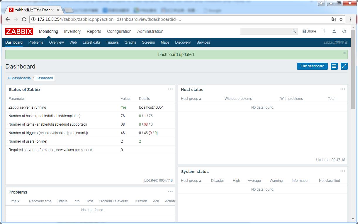 登陸,默認(rèn)用戶名Admin,密碼zabbix