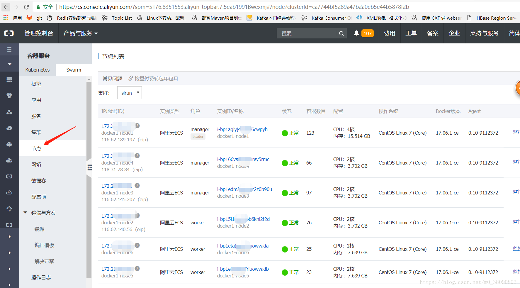 1.進入阿里云容器服務swram-節(jié)點 頁面