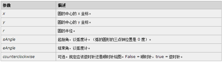 context.arc(x,y,r,sAngle,eAngle,counterclockwise);
