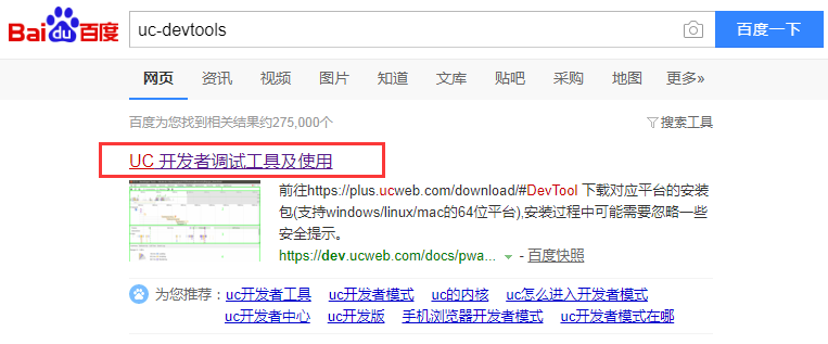 - 使用UC開發(fā)者調(diào)試工具,需要提前安裝,無需翻墻