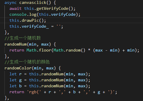 canvasclick 方法用于 當(dāng)用戶辨認(rèn)不清驗證碼,或者輸入錯誤重新輸入時,點擊 換一個 即可更新驗證碼(此時要重新從后臺獲取驗證碼) 后臺小哥哥不打烊吶~~~