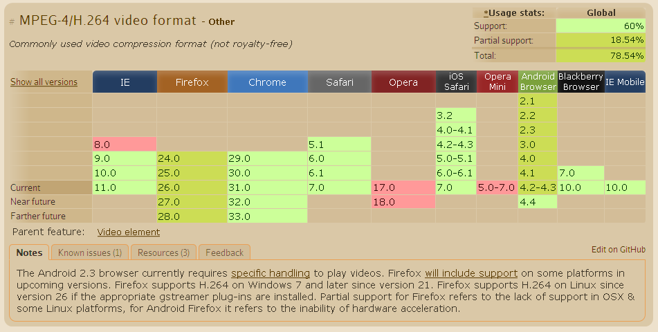 數(shù)據(jù)來源:http://caniuse.com/#feat=video