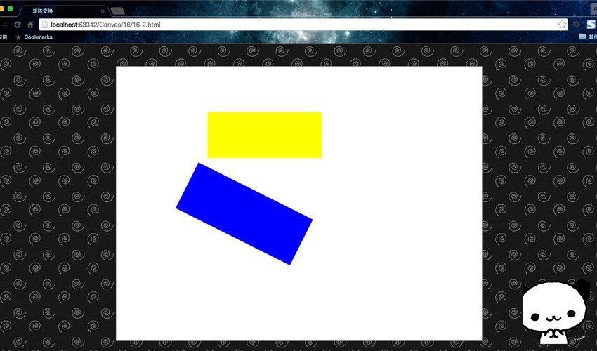 解釋一下過程:每當(dāng)我們調(diào)用 setTransform() 時,它都會重置前一個變換矩陣然后構(gòu)建新的矩陣,因此在下面的例子中,不會顯示紅色矩形,因?yàn)樗谒{(lán)色矩形下面。