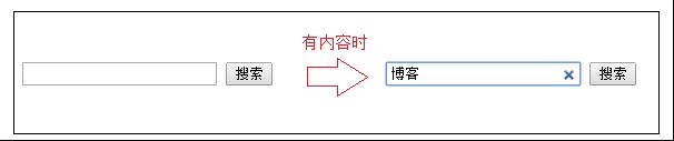 說明:在Chrome中搜索框沒內(nèi)容時就像普通的文本輸入框,當(dāng)有內(nèi)容時右邊有個'x'符號,用以清除文本內(nèi)容。
