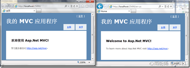 我們已經(jīng)把內(nèi)容轉(zhuǎn)移到了資源文件,但是我們的程序還不支持本地化,因?yàn)闆](méi)有任何地方我們可以設(shè)置指定語(yǔ)言的地方。為了簡(jiǎn)單起見(jiàn),我們將使用url來(lái)標(biāo)明選擇使用的語(yǔ)言(就類(lèi)似微軟網(wǎng)站),意思就是如果我的URL是http://localhost/en-US/Home/Index ,則網(wǎng)站會(huì)體現(xiàn)為英文;而http://localhost/zh-CN/Home/Index 則是簡(jiǎn)體中文。用戶可以在任何停留的頁(yè)面更改語(yǔ)言,而且 當(dāng)他想共享網(wǎng)址的時(shí)候也會(huì)保留語(yǔ)言設(shè)置。