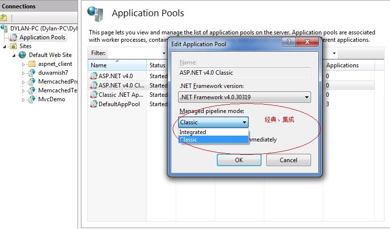 您可能感興趣的文章:- IIS7.5應(yīng)用程序池集成模式和經(jīng)典模式的區(qū)別介紹