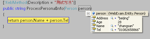 調(diào)用過程與簡單參數(shù)類型類似,就是通過在JS中用一個(gè)表示Person的person對(duì)象的字符串,發(fā)往客戶端后,WebService會(huì)自動(dòng)將person對(duì)象的字符串