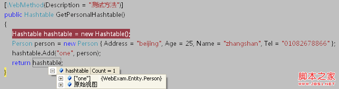 下面做一個(gè)有趣的測試。大家都知道WebService的返回類型不能為Hashtable類型。因?yàn)樗鼘?shí)現(xiàn)了因?yàn)樗鼘?shí)現(xiàn) IDictionary接口。